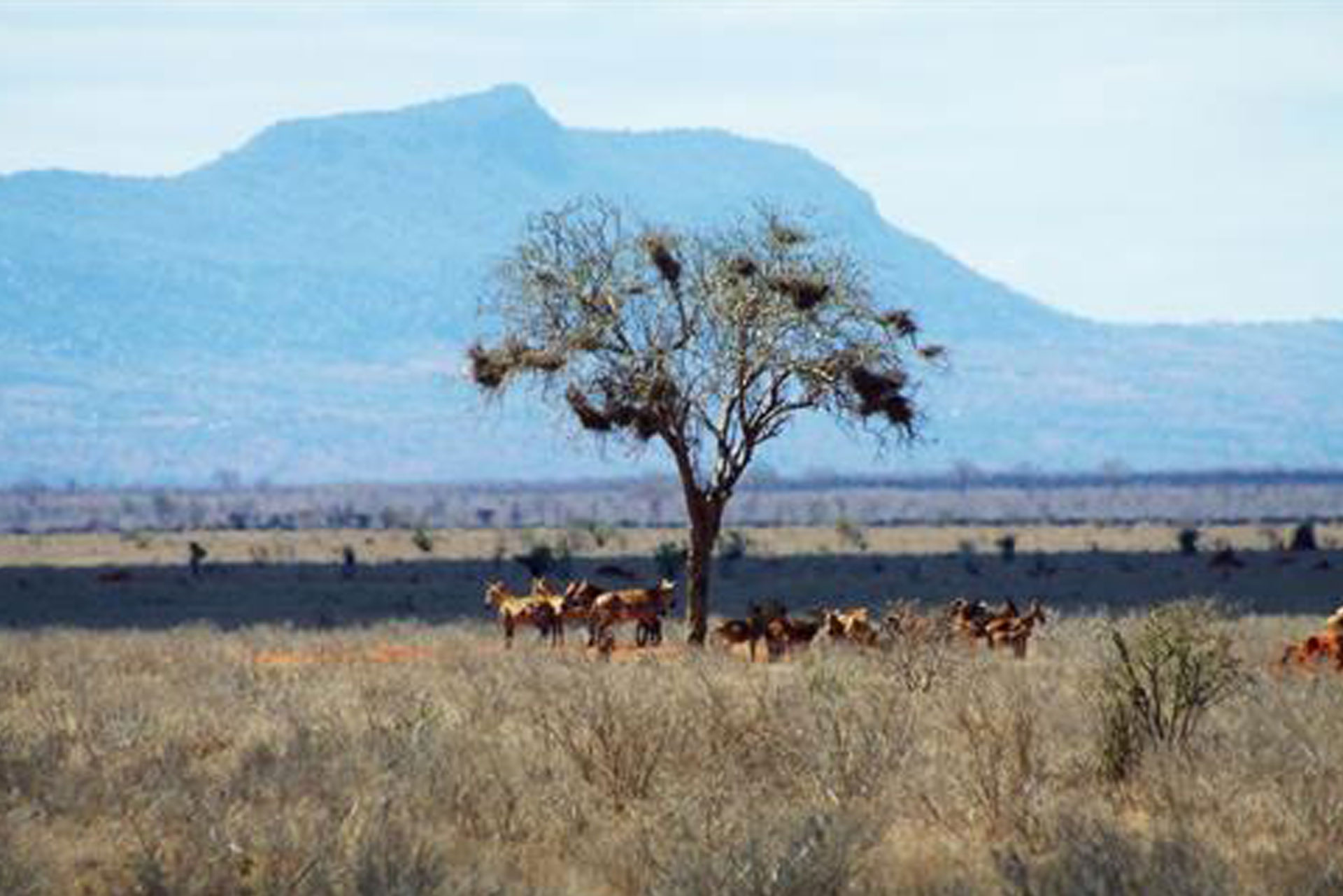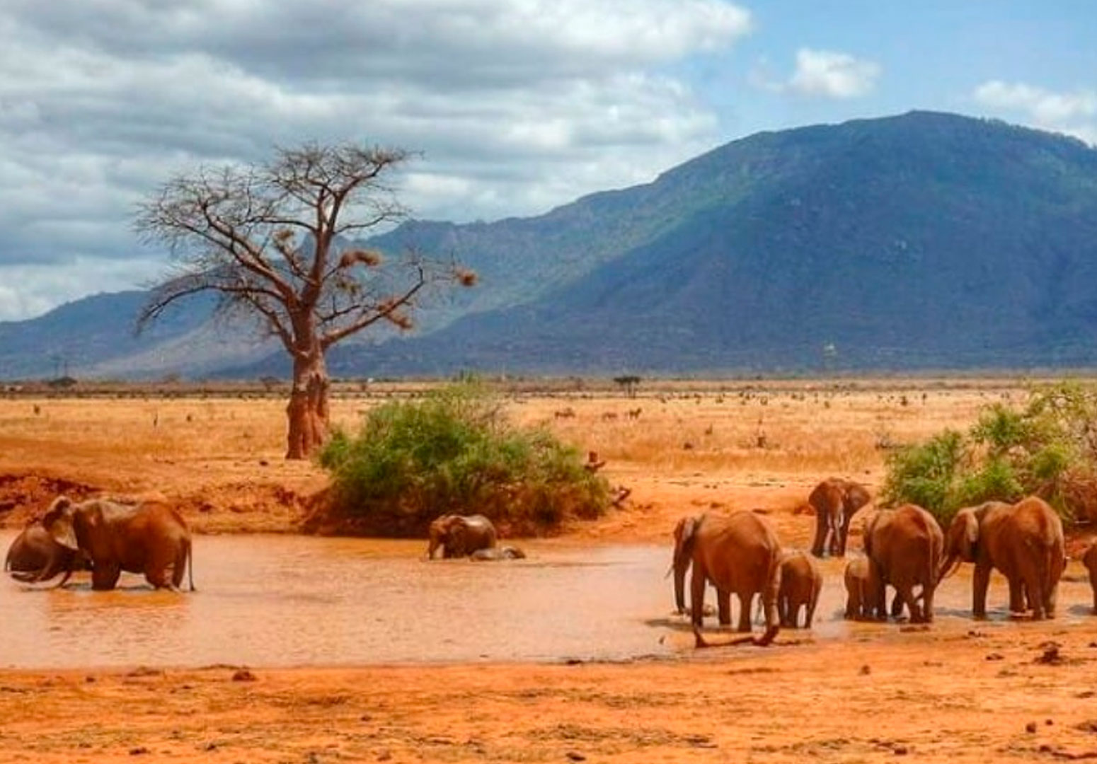 Tsavo East is renowned for its dramatic landscape, where the vast, flat plains are dotted with acacia trees and the famous Galana River meanders through the park, providing a critical lifeline for wildlife. Known for its immense herds of red elephants, Tsavo East is the perfect destination for those seeking an authentic, unspoiled safari experience. As you explore the park, you’ll come across: